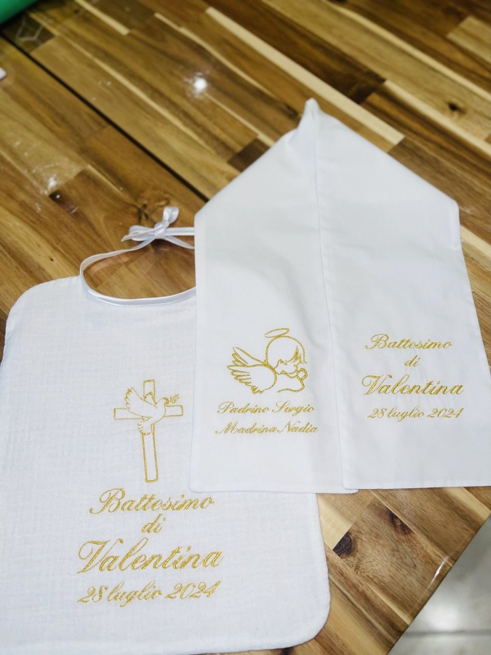 Comprends une écharpe de baptême en coton lisse avec parrain/ marraine