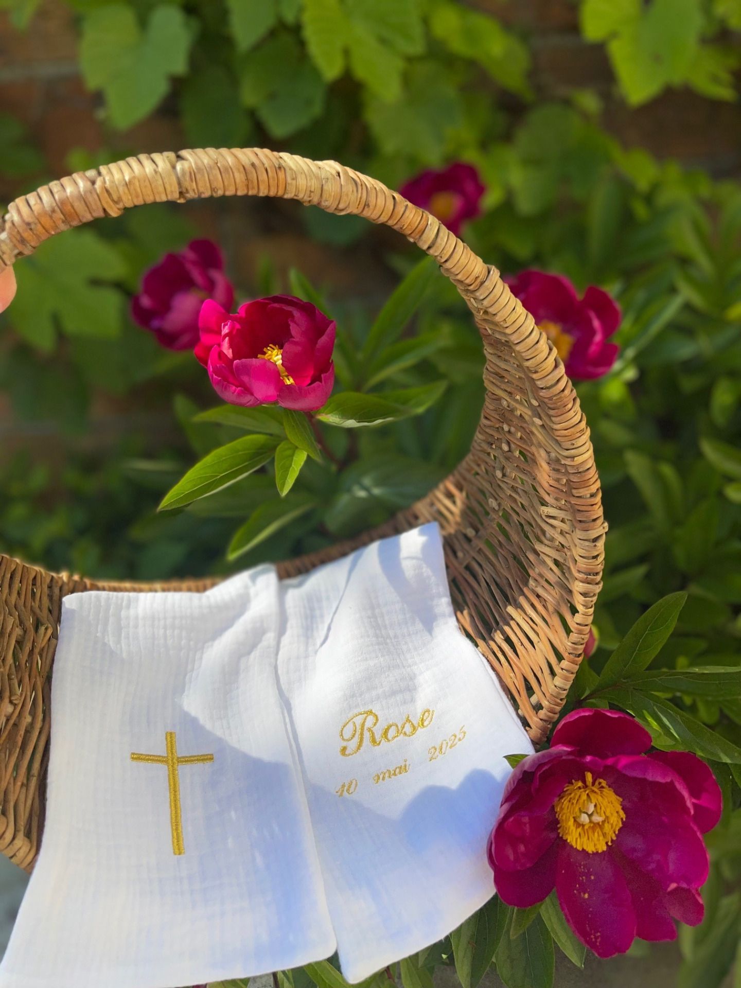 En double gaze(tissu 100 % coton et fils de broderie polyester)